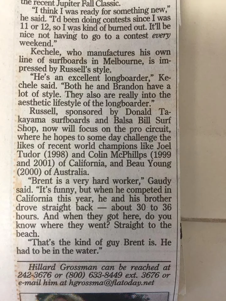 A newspaper article on Brent Russell, Circa 2002