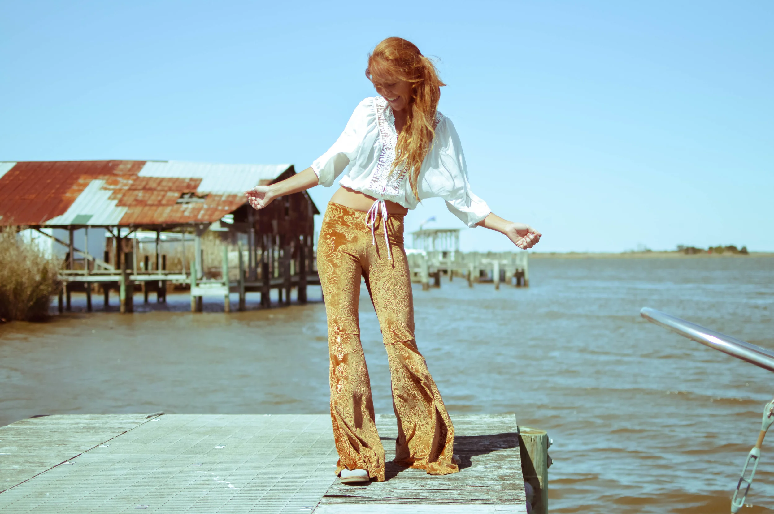 Yeah, suckers, I know there's no wax on that old classic surfboard, but there's about to be!!! Right after I take off these pretty rad bell bottoms from Liz Jane Handmade!